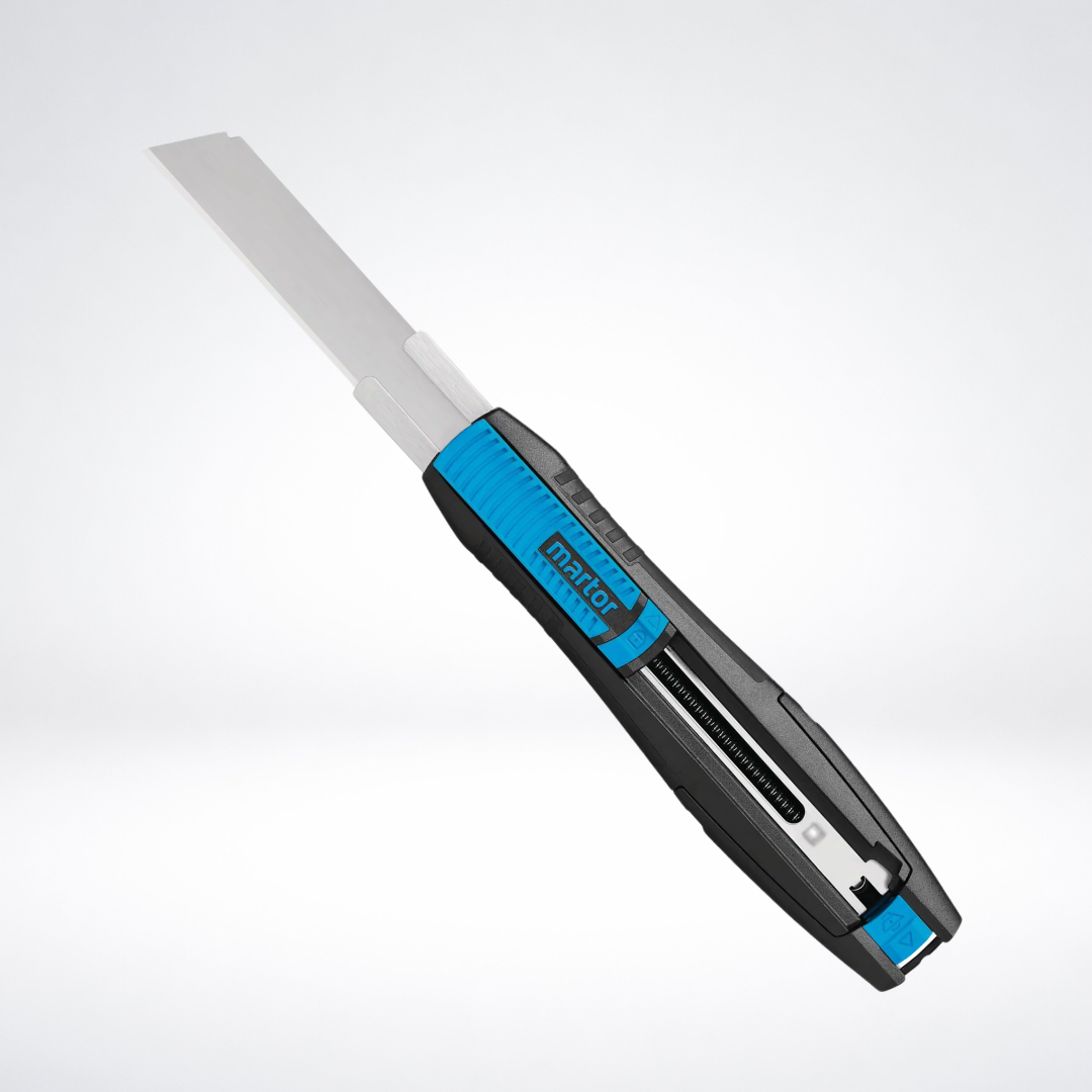 Der Sicherheitsmesser mit langem Klingen Martor SECUNORM 380 ist das weltweit erste Sicherheitsmesser mit automatischem Klingenrückzug und einer fast 8 cm langen Klinge. Wenn Sie nach einer weniger gefährlichen Alternative zu herkömmlichen Messern mit langer Klinge suchen, ist dies die Antwort. Das Messer ist zusätzlich mit einer Transportsperre ausgestattet, die unerwünschte Klingenaktivitäten verhindert.