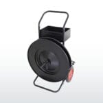 Ta visokokakovosten kombinirani voziček je primeren za vsa navitja na velikih kolutih (tj. notranji premer koluta 406 mm, širina do 150 mm). Zaradi svoje posebej trdne zasnove se lahko brez težav uporablja za PP in PET trakove. Vgrajena zavora preprečuje nenamerno odvijanje traku. S svojimi stabilnimi gumijastimi kolesi je ta voziček zelo primeren tudi za mobilno uporabo. Dodatke kot npr. sponke in orodje lahko priročno pospravite v škatlo za shranjevanje.