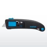 Polno avtomatski umik rezila pri modelu SECUPRO MAXISAFE zagotavlja zelo visok nivo varnosti pred vrezninami. Rezilo se pospravi nazaj v ročico nemudoma po tem, ko izgubi stik z rezanim materialom. Tudi, če še zmeraj pritiskate na vzvod za aktivacijo rezila.